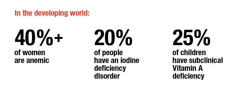 Micronutrient deficiency is when one’s body does not receive the necessary amount of vitamins and minerals to properly function. “At the subclinical level of micronutrient deficiency poor general health and decreased school and work performance are likely to result, and mortality risk increases. Known clinical outcomes of micronutrient deficiencies include impaired growth and cognitive development, poor birth outcomes, anaemia, cretinism, and blindness,” (Micronutrient Report). However, in addition to directly affecting the individual who is malnourished, micronutrient deficiencies can also significantly impact the institutional frameworks of economic and social health in any given country. Large amounts of people who are unhealthy in terms of vitamin and mineral consumption consequently increase healthcare costs and produce a less viable workforce, which thwart economic progress.